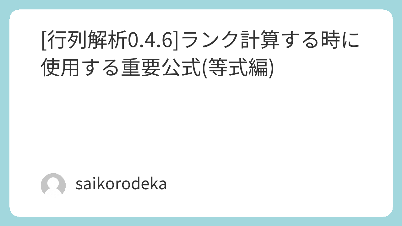 [行列解析0.4.6]ランク計算する時に使用する重要公式(等式編)