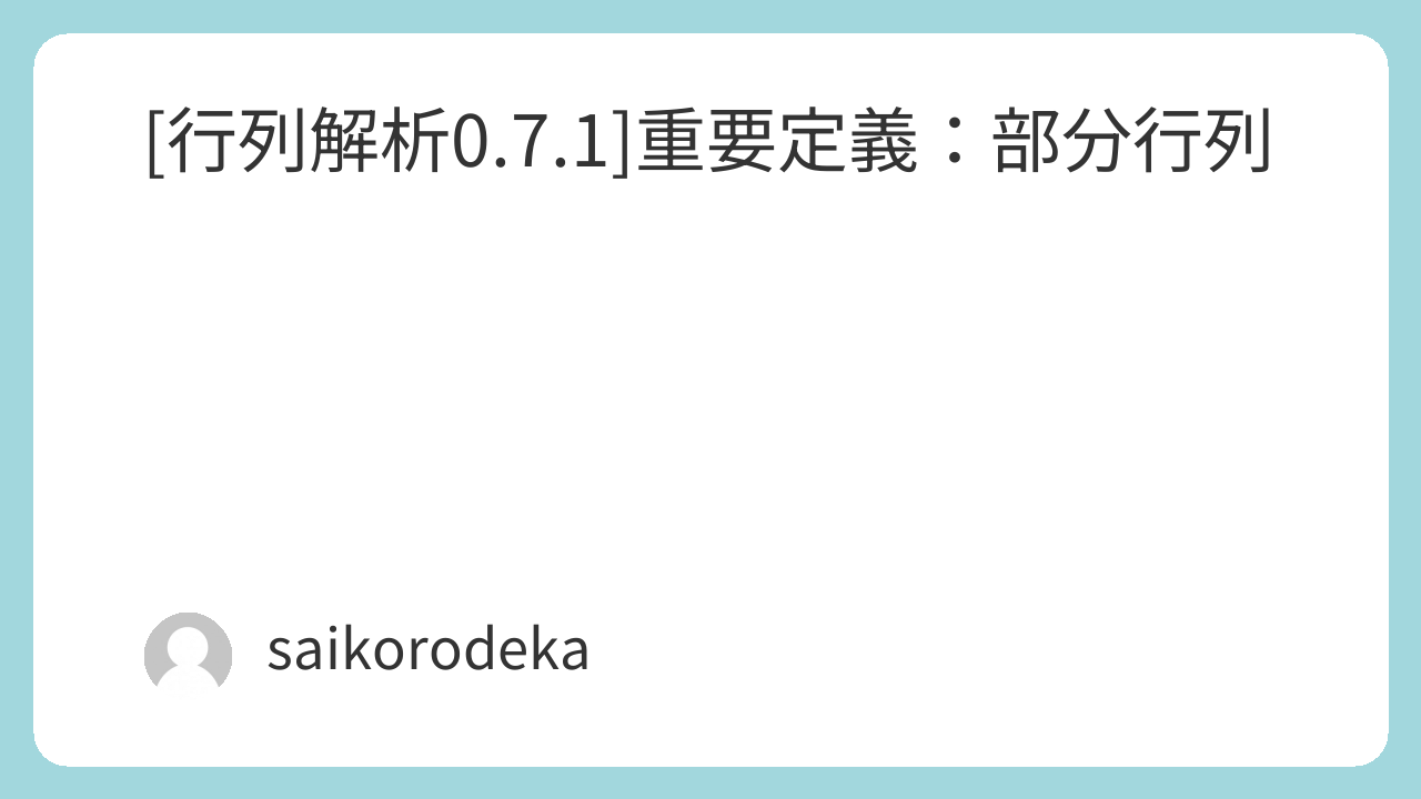 部分行列や主部分行列は、行や列を「含める」方法ではなく、「除く」方法でも指定できます。その場合、補集合を用います。すなわち、