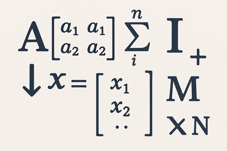 \( x, y, z, \dots \):列ベクトル。例:\( x = [x_i] \)